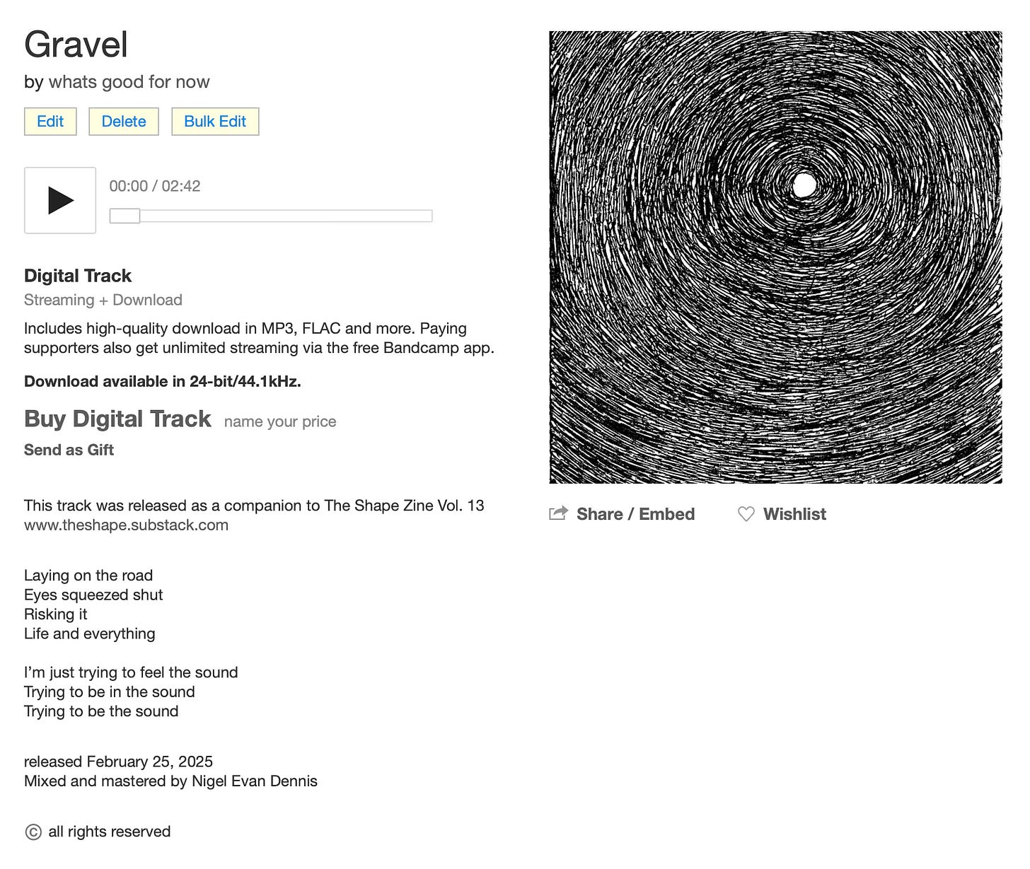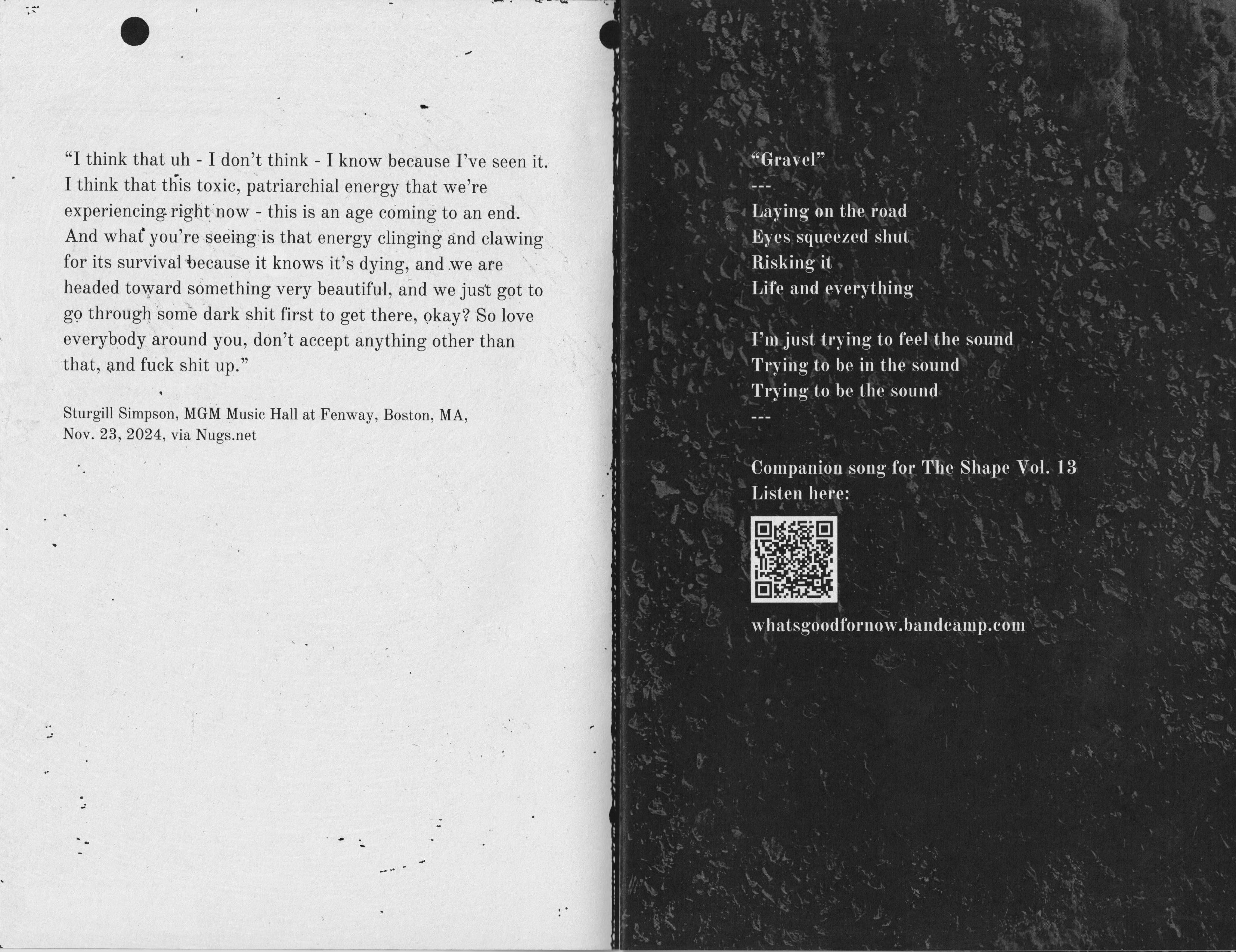 The Shape Vol. 13Are People Good or Bad? I don't know, but maybe the whales know.The ShapeFeb 28, 20252ShareListen to Gravel, an original song and companion to The Shape Vol. 13 on Bandcamp.Listen to Gravel, an original song and companion to The Shape Vol. 13 on Bandcamp.